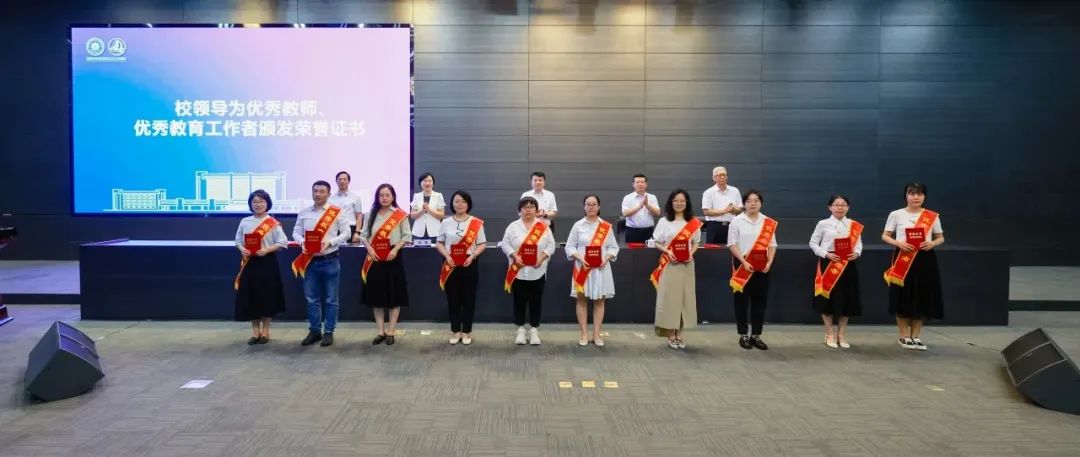 会议在庄严的国歌声中拉开序幕。会上,副校长崔雅利宣读了《关于表彰2022-2023学年度优秀教师和优秀教育工作者的决定》《2023年学校获得从事教育工作三十年纪念证书人员名单》。校领导为获得校级优秀教师和优秀教育工作者称号的教师颁发荣誉证书,为从教三十年教师颁发纪念证书。新老教师接续传承,传递育人接力棒,令与会人员深受感动。