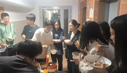在聚餐期间,同学们自主准备食材,展示厨艺,邀请同学们一同品尝。回锅肉、红烧鸡腿、番茄牛腩等数道美食让人垂涎欲滴,同学们互相品尝精心准备的饭菜,欢聚一堂,“以菜会友“的形式在其乐融融的氛围中让大家更加团结紧密,在今后生活中更加融洽,共同畅谈赴波留学的感受。