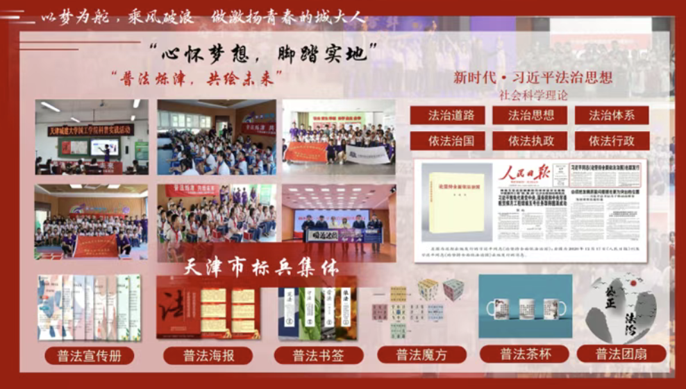 心怀梦想,脚踏实地。参与并成为学校低碳建筑科普基地骨干成员,下沉乡村、中小学开展科普志愿活动,覆盖人数达1000人次。乡村振兴,有我一份,搭建城乡共建平台,撰写调研报告,制定墙绘方案,受到村民喜爱。普法烁津,共绘未来,传递法治精神。参与暑期实践活动,循迹城市发展,投身基层服务,传承薪火绽放青春。