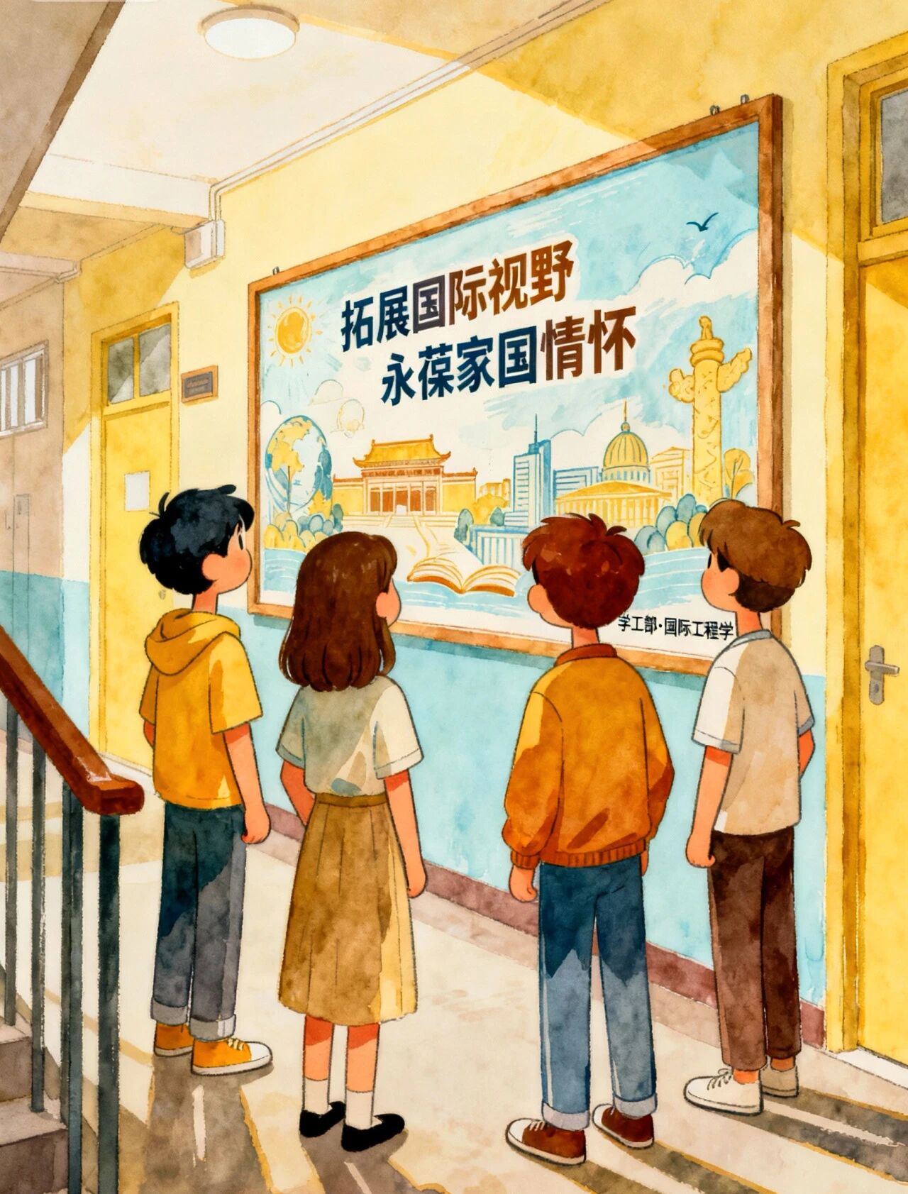 为切实落实好示范社区建设和宣传展示的工作要求,推进“一站式”学生社区文化建设,学工部联合国际工程学院整合学生社区空间资源,打造以“拓展国际视野,永葆家国情怀”为主题的文化墙。文化墙充分展示海外学习实况、优秀毕业生风采和学业成果,拓宽学生国际视野,营造开放包容的社区文化氛围,助力培养具备国际视野与跨文化沟通能力的高素质国际化人才。