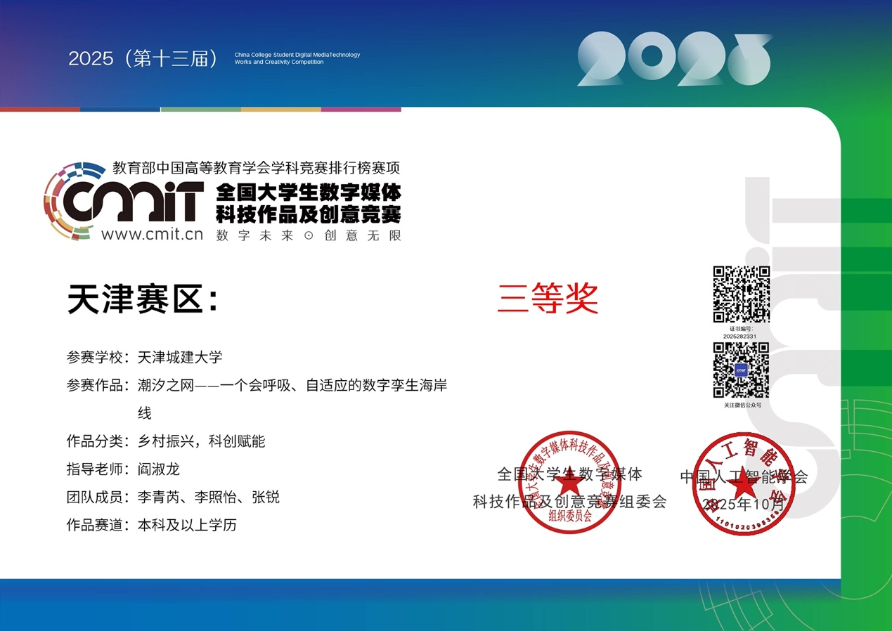 (4)2025年全国大学生数字媒体科技作品及创意竞赛省部级三等奖 (2项)。