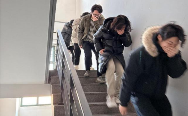 All faculty and students present followed the drill procedures and simulated a series of scenarios: discovering a fire and reporting it promptly; covering their mouths and noses tightly with towels or clothes, bending down to keep a low profile, and evacuating in an orderly manner to the safe zone in accordance with the safety signs and teachers' guidance; as well as faculty members of the ISE using fire extinguishers to put out an incipient fire.
