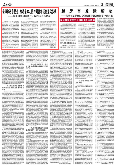 全体人民共同富裕是中国式现代化的本质特征。党的二十届四中全会坚持以人民为中心的发展思想,牢牢把握共同富裕的目标要求,围绕加大保障和改善民生力度、扎实推进全体人民共同富裕作出战略部署,鼓舞激励亿万人民在新征程上踔厉奋发,为创造更加幸福美好生活而不懈奋斗。